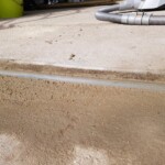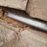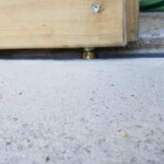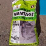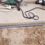 Pour guider la porte, et la stabiliser, il lui faut suivre le rail en « U » à sa base. Du coup j’ai du creuser puis sceller celle-ci avec du mortier de montage de chez Leroy Merlin. Je l’ai placé à l’aplomb de la porte.